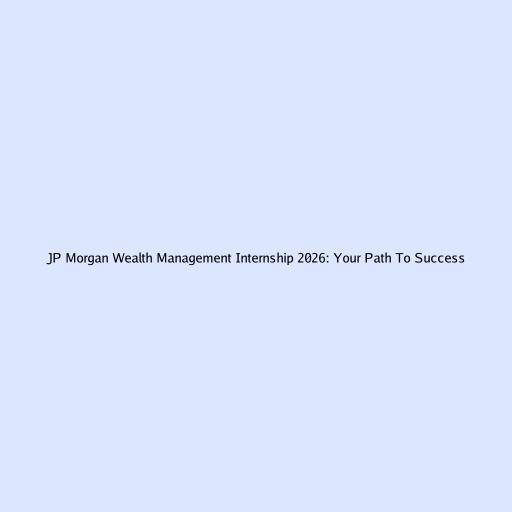 JP Morgan Wealth Management Internship 2026: Your Path To Success