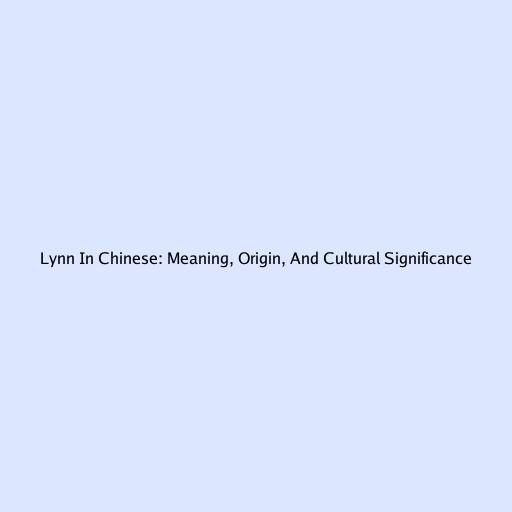 - Lynn in Chinese: Is There a Direct Translation?